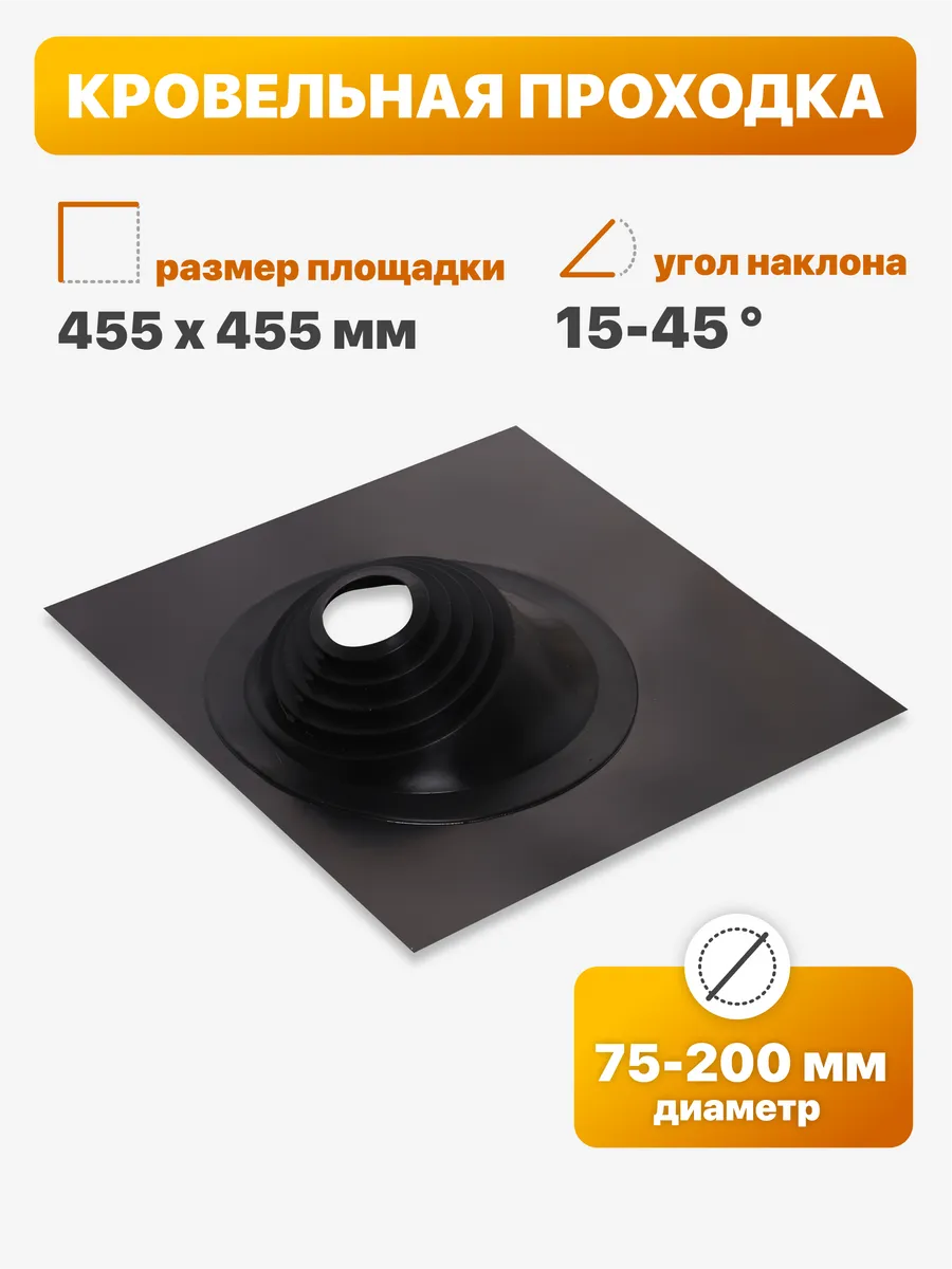 Кровельное примыкание угловое 30-55° №1 D RES (master flash), d75-200 черный 505x460