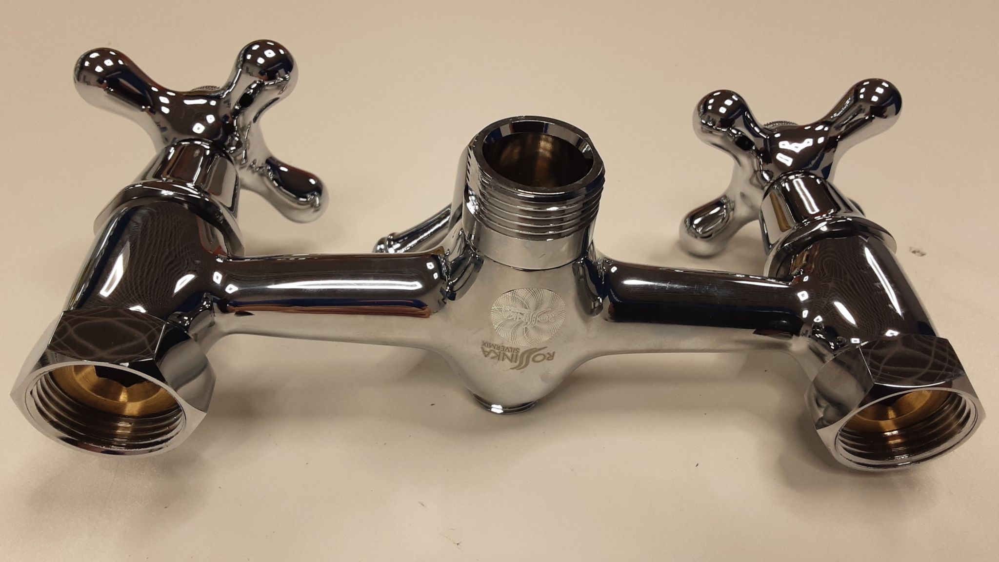 Смеситель двуручный для ванны с плоским изливом 350 мм, хром Rossinka
